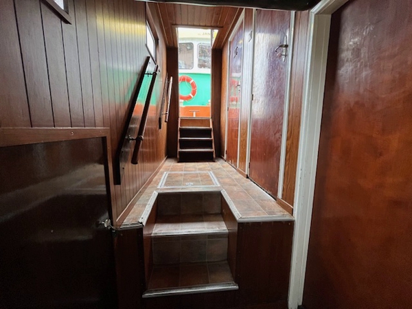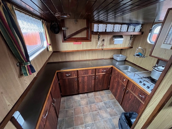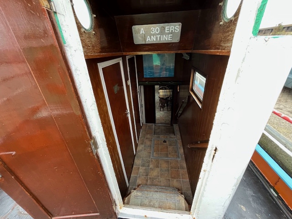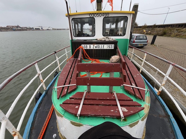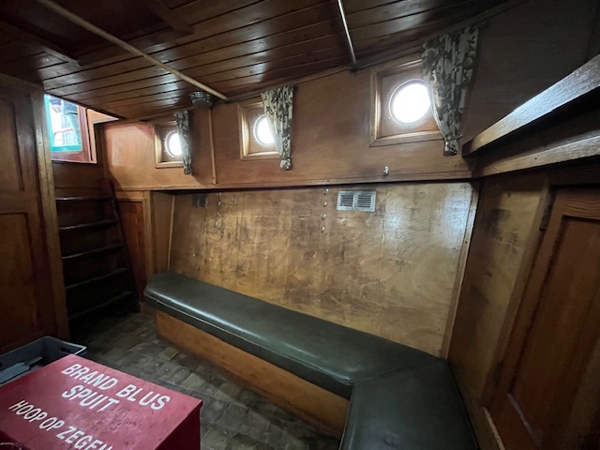 Steilsteven, passenger ship ‘Janny’, built in 1923, dimensions 23.51 x 3.80 x 1.17/0.90m. DAF 615, 120 HP. The ship has a spacious bridge, cozy saloon/canteen with spacious galley, hall with toilet, and two spacious storage cupboards. A nice detail is the original skipper's quarters at the stern, which are still present. The Janny has a lot of stainless steel, but she needs some love and attention > a coat of paint would brighten things up nicely. The ship used to be a cargo ship for Frico Friesland.